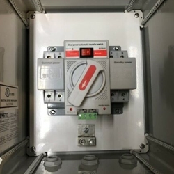 Dual Power Automatic Transfer Switch UL Enclosure, 1 Phase, 2 Pole120/240 VAC, 63 amp. Can Be Used Inside and Outside Dust and water tight, Poly-carbonate wall mount Enclosure Size 12.0 x 10.0 x 6.0 in.